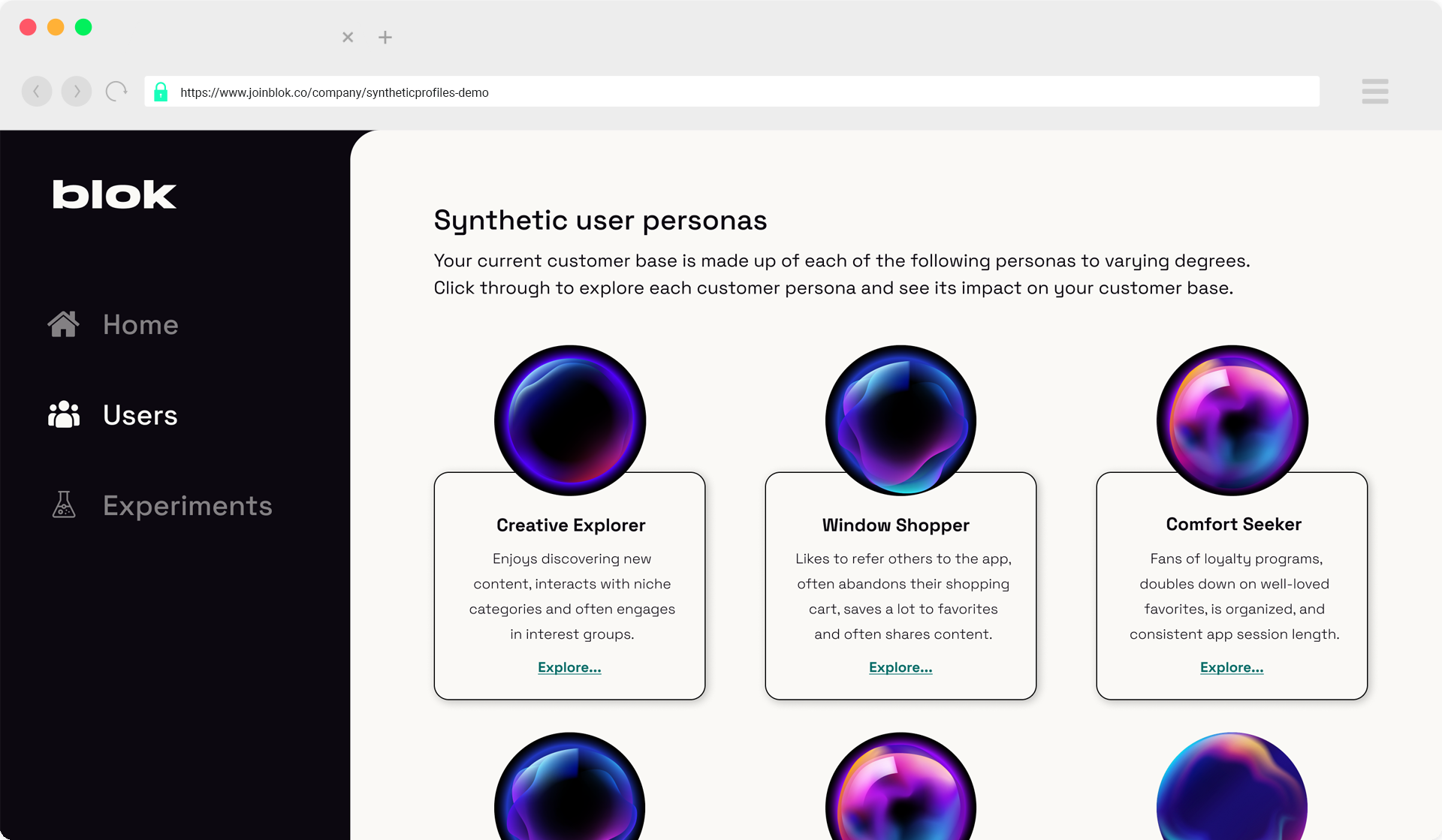 Basically, anywhere you'd normally A/B test, run usability studies, or make product changes based on gut feel - Blok can simulate behavior before you commit.