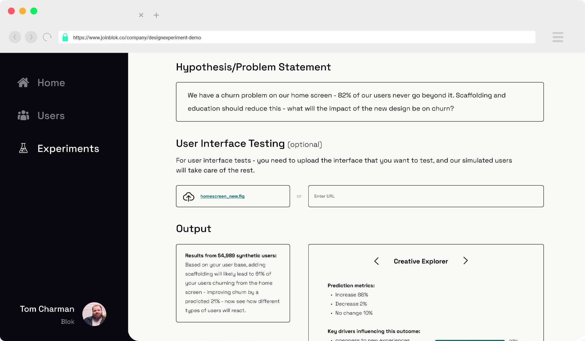 Blok is designed for product managers, UX researchers, growth teams, and design leads - anyone responsible for building or optimizing user-facing experiences. It’s especially useful for teams working on onboarding, conversion, activation, retention, and feature adoption - where user behavior makes or breaks performance. That said - we're also seeing marketing teams use us to test copy ahead of going live.